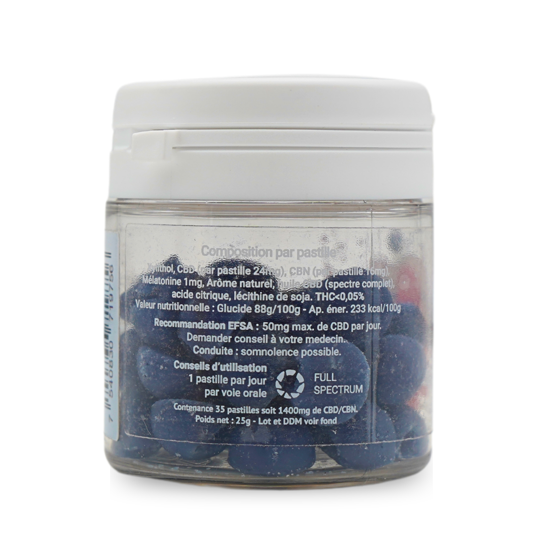 - CBD (24mg per lozenge): each candy contains an effective dose of CBD Full Spectrum to promote relaxation.